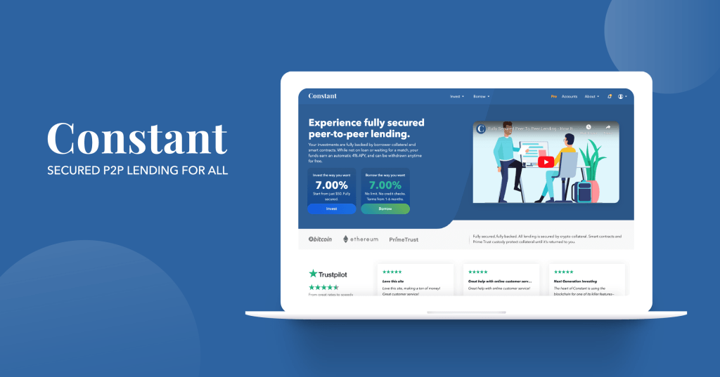With flexible terms and up to 3x the interest of a CD, crypto-backed offers a reliable alternative investment in challenging times. Given all lending is backed by cryptocurrencies, the risk of loss due to borrower default is lower than unsecured p2p lending platforms. MyConstant carefully selects which cryptocurrencies it accepts as collateral to ensure they can be sold at a moment’s notice, Their lending model has not failed them yet, with no investor losses since launch in early 2019.